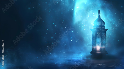 Fototapeta premium A mystical lantern glowing in a dark, starry atmosphere.