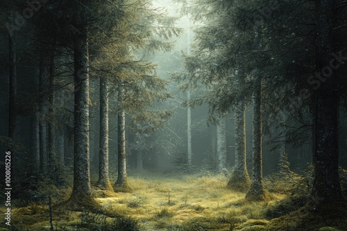 © MrHamster, Fototapeta premium A Mystical Path Through a Foggy Evergreen Forest