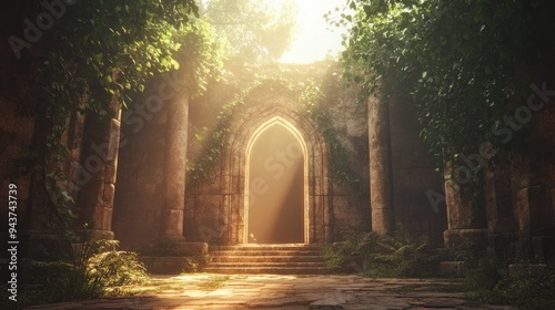 Fototapeta premium A mystical time travel portal opening in the heart of an ancient fantasy...