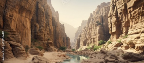 © cusniatul, Fototapeta premium A Narrow Canyon with a Stream Running Through It