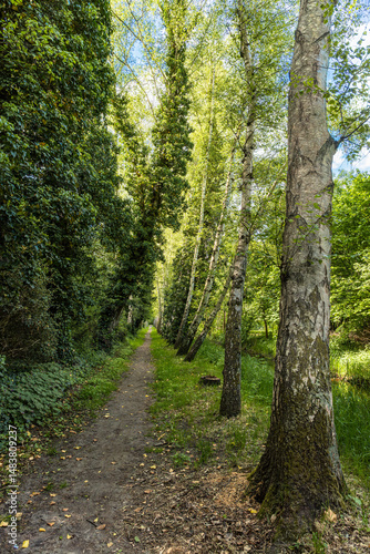 Fototapeta premium A narrow path between birch trees and fresh spring green
