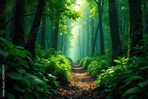 © photohappy, Obraz premium A narrow path disappears into the dense undergrowth of the jungle, forest, canopy