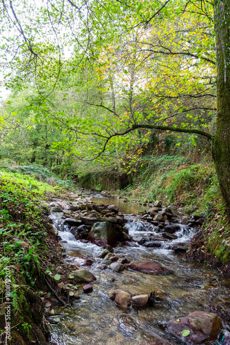 © Hamdi Bendali, Obraz premium A narrow rocky stream flows through a lush green forest in Skikda, Algeria.