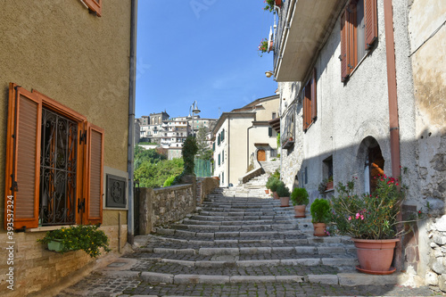 Naklejka premium A narrow street among the old houses of Patrica, a medieval village in the...