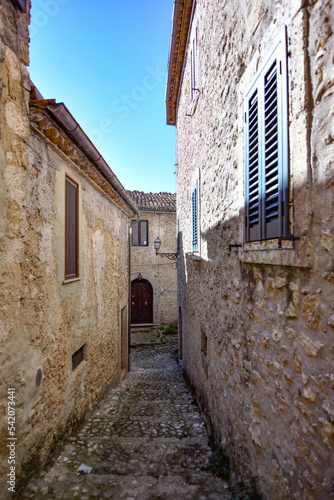 Fototapeta premium A narrow street between the old stone houses of Civitavecchia di Arpino, a...