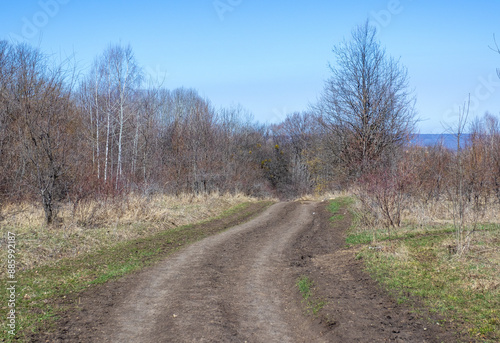 © NAIL BATTALOV, Naklejka premium a natural forest road leading to the forest , traveling and walking in nature