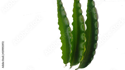 Naklejka premium A natural green leaf with a white background