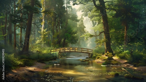 Obraz premium a natural landscape with dense forest with large trees and different...