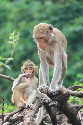 © จิตรกร เนาเหนียว, Fototapeta premium A naughty little monkey on a branch