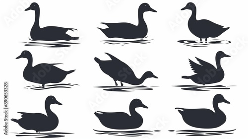 Fototapeta premium A neat grid of duck silhouettes showing various postures, each duck...