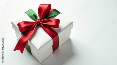 © Vibrant Visions Pixe, Obraz premium A neatly wrapped present with a vibrant red and green ribbon bow