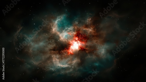© Dmitry, Fototapeta premium A nebula with red, orange, and white colors.