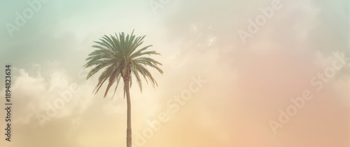 © The 2R Artificiality, Fototapeta premium A negative color photograph featuring a palm tree in California