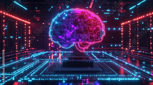 Obraz premium A Neon Brain Within a Digital Networked System