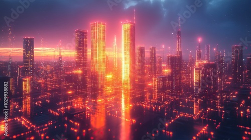 Fototapeta premium A neon city portrait highlighting vibrant colors and futuristic designs.