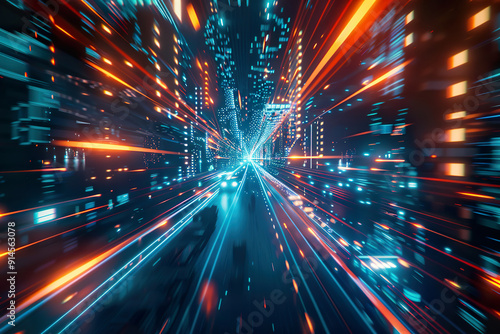 © shobakhul, Fototapeta premium A neon colored room with a blue and pink floor, generative ai.