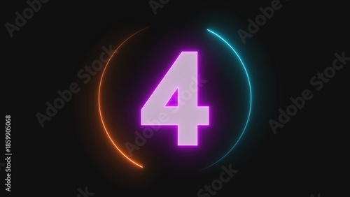 © Jahanara Stock, Obraz premium A neon-lit number four surrounded by colorful circular lines on a dark background