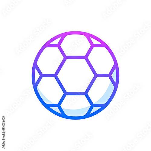 © Berkah, Fototapeta premium A neon-outlined soccer ball against a stark black background, showcasing a gradient effect