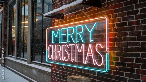 Obraz premium A neon sign that says Merry Christmas on a brick wall
