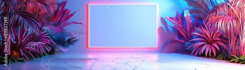 © AnuStudio, Naklejka premium A neon sign with a white background and a red border
