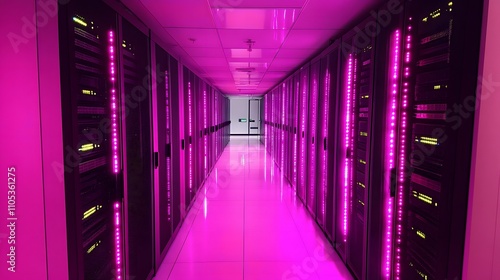 Fototapeta premium A network of cables with orange and green lights. The cables are connected to...