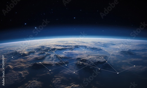 Fototapeta premium a network of communication satellites forming a constellation above the clouds