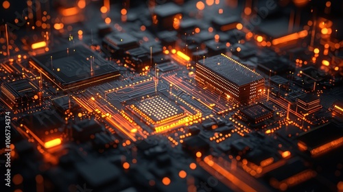 Obraz premium A network of glowing microchips and lines forming an abstract futuristic...