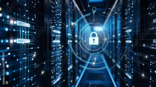 Obraz premium A network security Data Center with a Virtual Lock, Protecting Sensitive Information