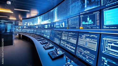 Fototapeta premium A next-gen industrial control center running quantum-optimized logistics.
