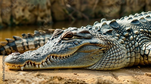 © Photock Agency, Fototapeta premium A nice crocodile resting on land by the river