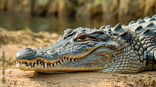 © Photock Agency, Fototapeta premium A nice crocodile resting on land by the river