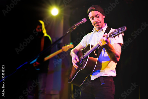 © Louis-Paul Photo, Fototapeta premium A nice Man playing guitar at a bar