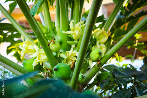 © Ratheesh, Fototapeta premium A nice papaya growing with flowers