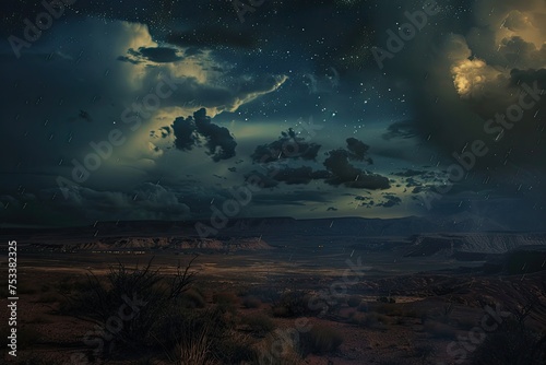 Obraz premium A night desert storm with northern lights visible in the sky