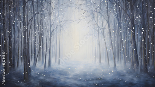 © Creative AI Artworks, Fototapeta premium A Night in the Winter Forest: Trees Covered in Snowfall