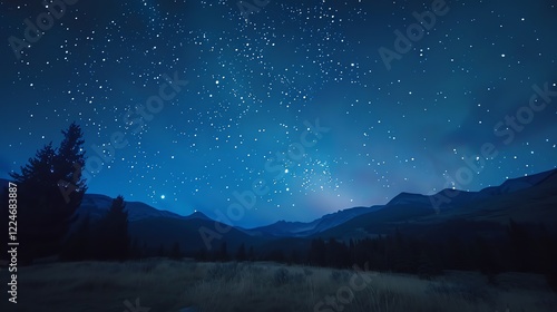 © Galib, Obraz premium A night sky full of stars over a mountain range.