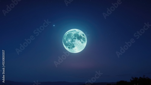 © Cyber Shutter, Fototapeta premium A night sky illuminated by the moon with starry surroundings and atmospheric glow.