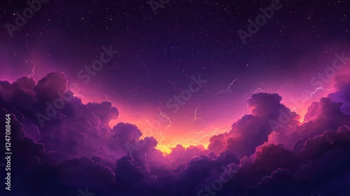 © ArmStrong☠, Naklejka premium A night sky with dark purple storm clouds glowing from lightning.