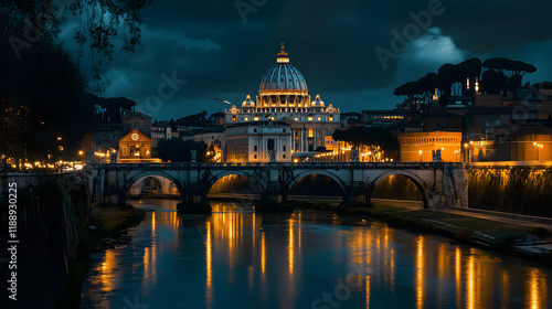 Fototapeta premium A night view of St. Peter's Basilica in Rome, Italy.