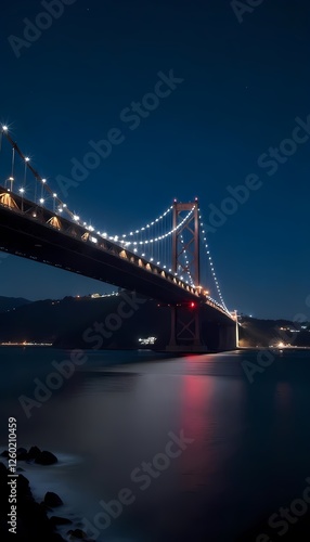 © Mikke, Fototapeta premium a nighttime view of a large suspension bridge.