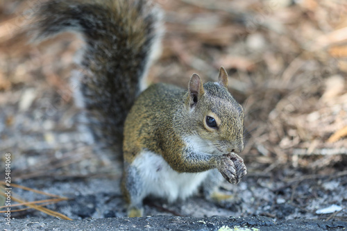 © Nicole, Fototapeta premium A North American Eastern Grey Squirrel eats a French Fry