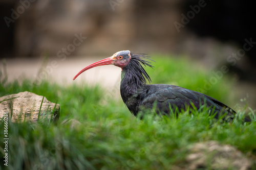 Naklejka premium A Northern Bald Ibis sitting on the ground