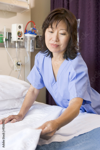 © Monkey Business, Fototapeta premium A Nurse Making A Bed In A Hospital Ward