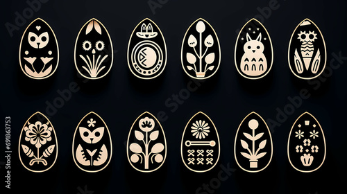 © Knut Hebstreit, Fototapeta premium A Outline Different Easter Day Logo, a group of eggs with different designs.