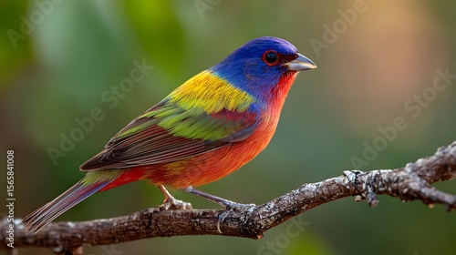 © ImageFusion , Obraz premium A painted bunting perched on a branch displaying its vibrant plumage in detail