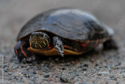 © CaughtOnCameraPhoto, Fototapeta premium A Painted Shell Turtle travelling across the road