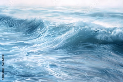 Fototapeta premium A painting depicting a wave in the ocean, with peaceful waves of powder blue ebbing and flowing, Peaceful waves of powder blue ebbing and flowing