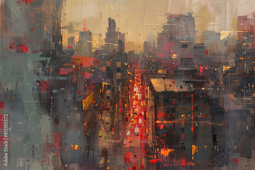 © Formoney, Obraz premium A painting of a city street with cars and buildings