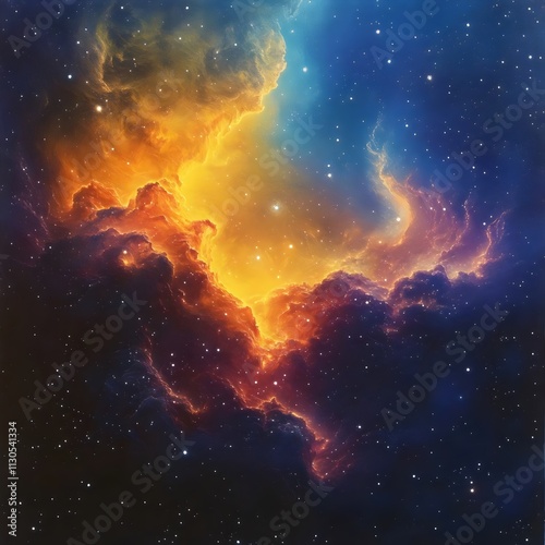 © Linus, Fototapeta premium A painting of a colorful nebula with a blue sky background
