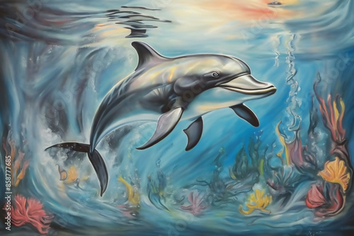 © afif, Obraz premium A painting of a dolphin using pastel tone color.